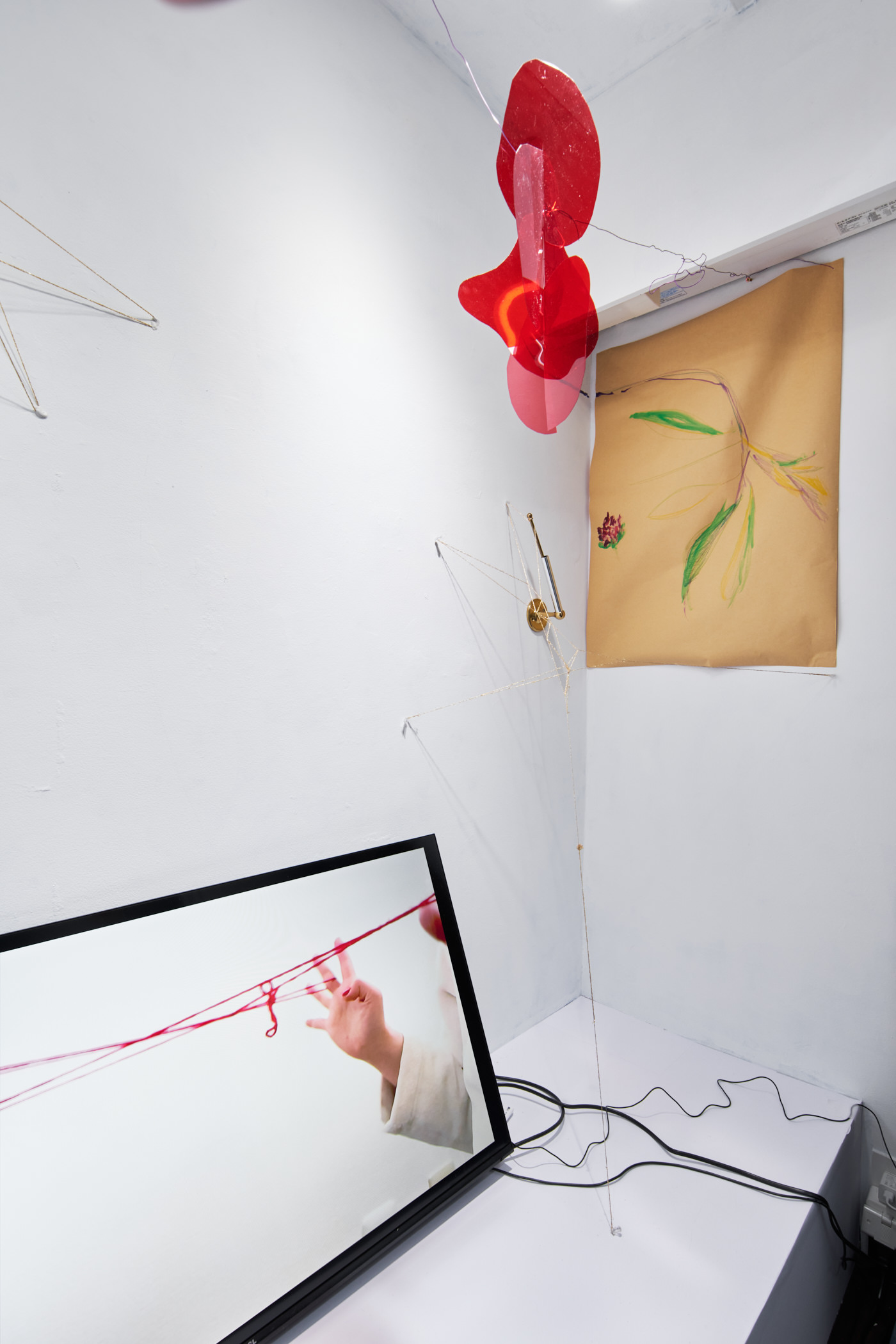 構築していくことが可能か。糸がからまり、手放し、またOから作る。豊穣と繁栄、人間の罪を受けて流した血。冥界と地上を繋ぐ実。太陽を受けた赤い光。割れた果実は