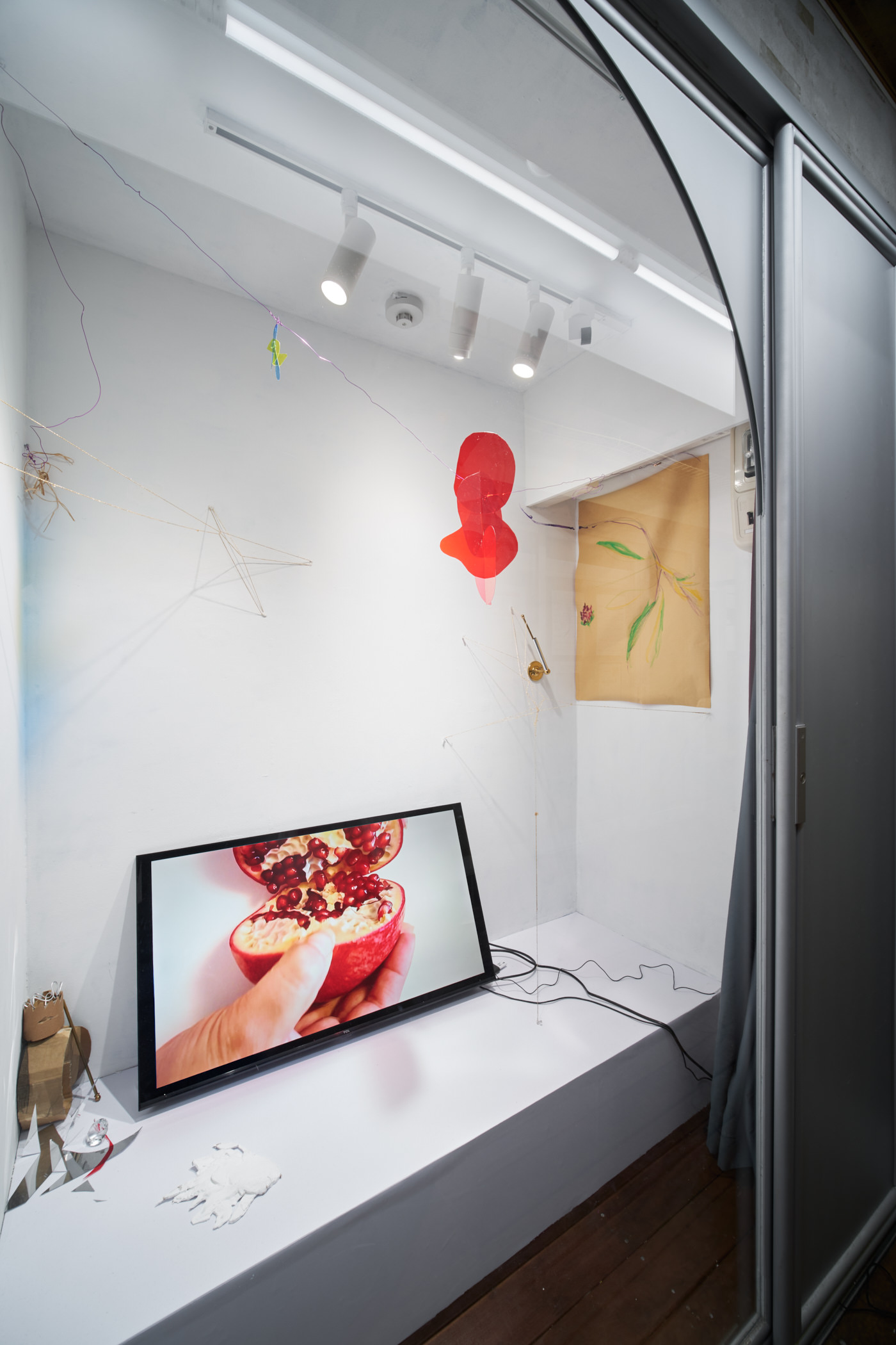 構築していくことが可能か。糸がからまり、手放し、またOから作る。豊穣と繁栄、人間の罪を受けて流した血。冥界と地上を繋ぐ実。太陽を受けた赤い光。割れた果実は